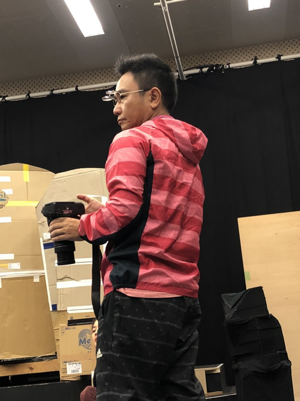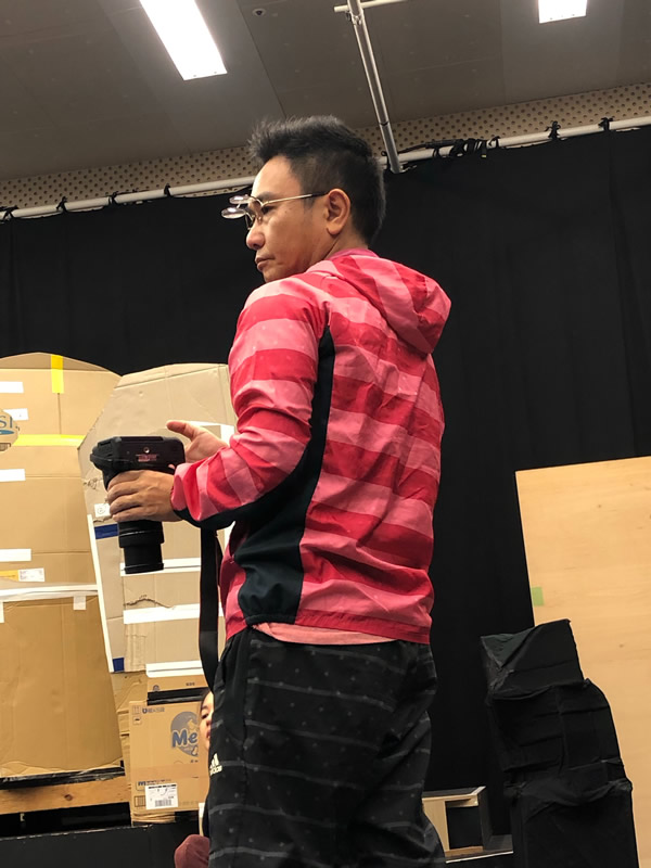 劇団員三人娘を撮影する姿は