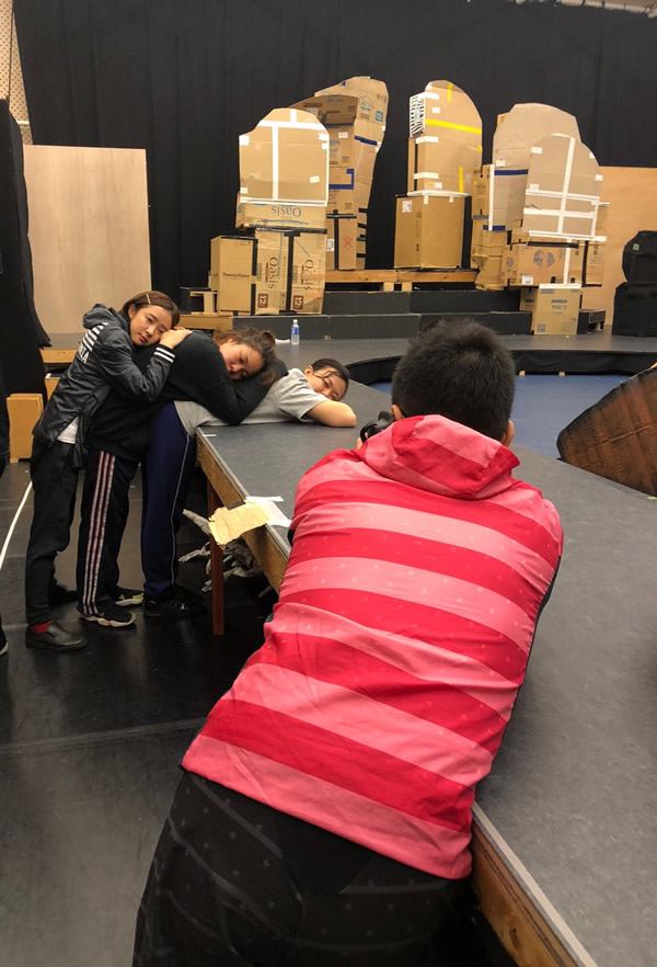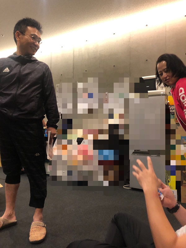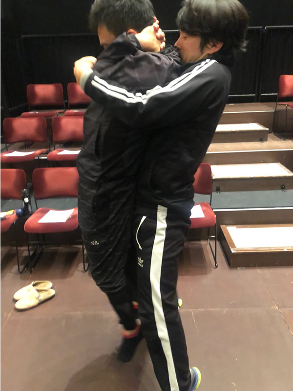 している八嶋さんと劇団員プリタ。
